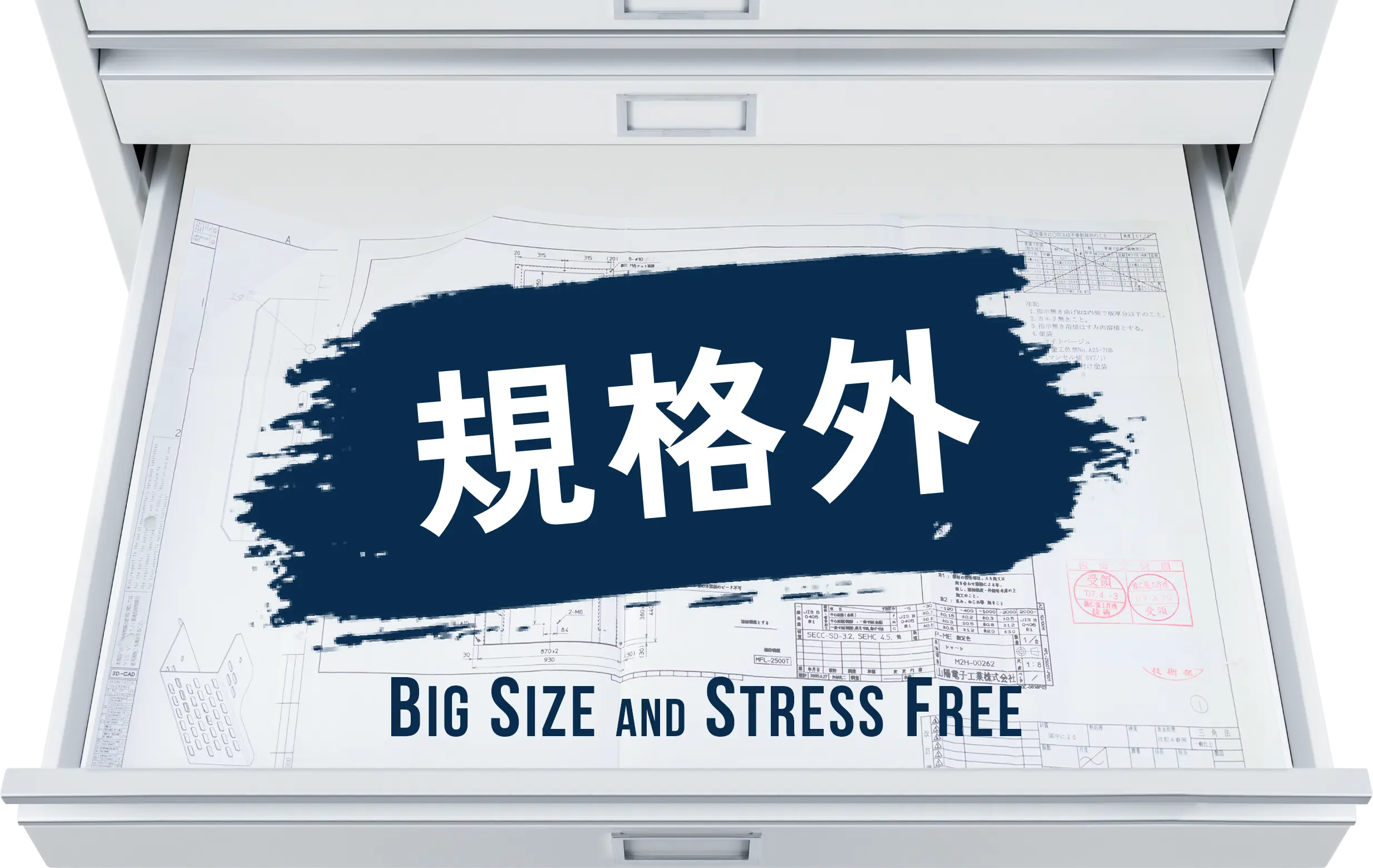 半導体フィルム・印刷フィルム・大型図面・建築図面・版・ポスター・絵画…規格品では得られない大型の薄型引出しには、当社の技術ノウハウがぎっしり詰まっています。